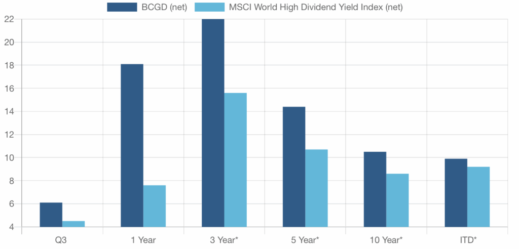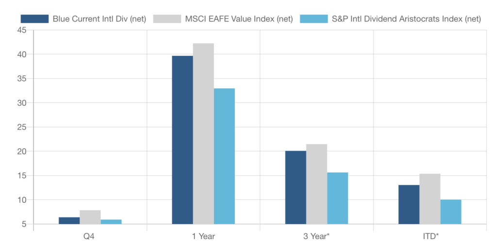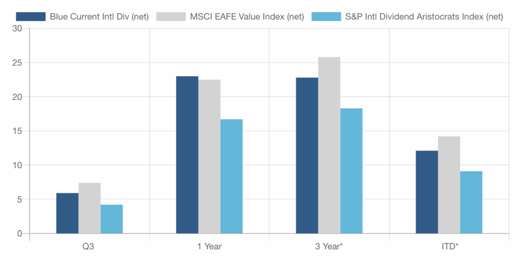 Since 2009, Blue Current has focused on delivering sustainable dividend income growth so that you can maintain your purchasing power without worrying about inflation eroding your quality of life. Our strategies invest in growing companies that are committed to continually increasing their dividends over time so that you directly benefit from their success. Our flagship global dividend growth strategy has delivered a 10% annual increase in distributed dividends since its inception.